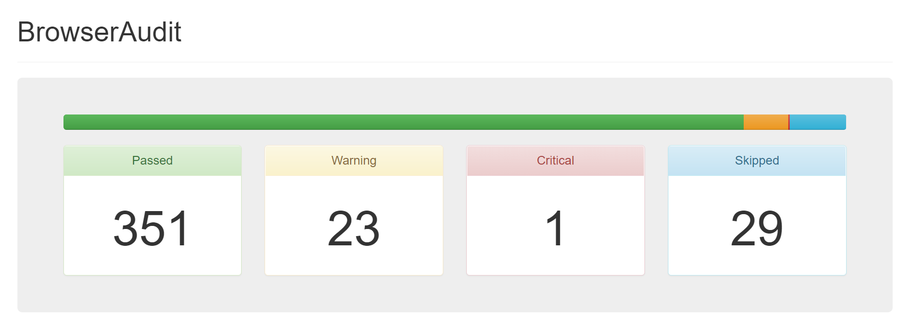 BrowserAudit是用来自动测试你所使用的浏览器的安全性能的工具网站,你只需要打开链接,点击Test me就可以开始测试,就可以了,整个测试过程需要浏览器测试400多个项目,因此耗时较长,需要耐心等待,通过更多的测试,就能发现更多的问题和风险。