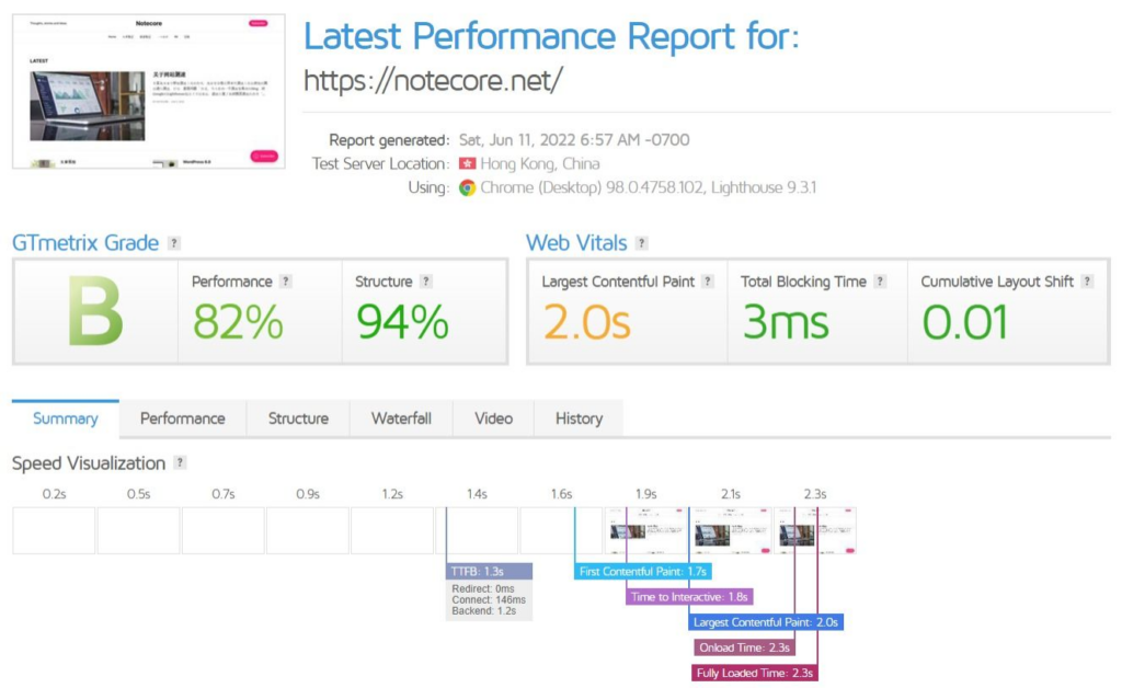 这里测试一下开启全站加速前后,网站在Gtmetrix上的速度区别。