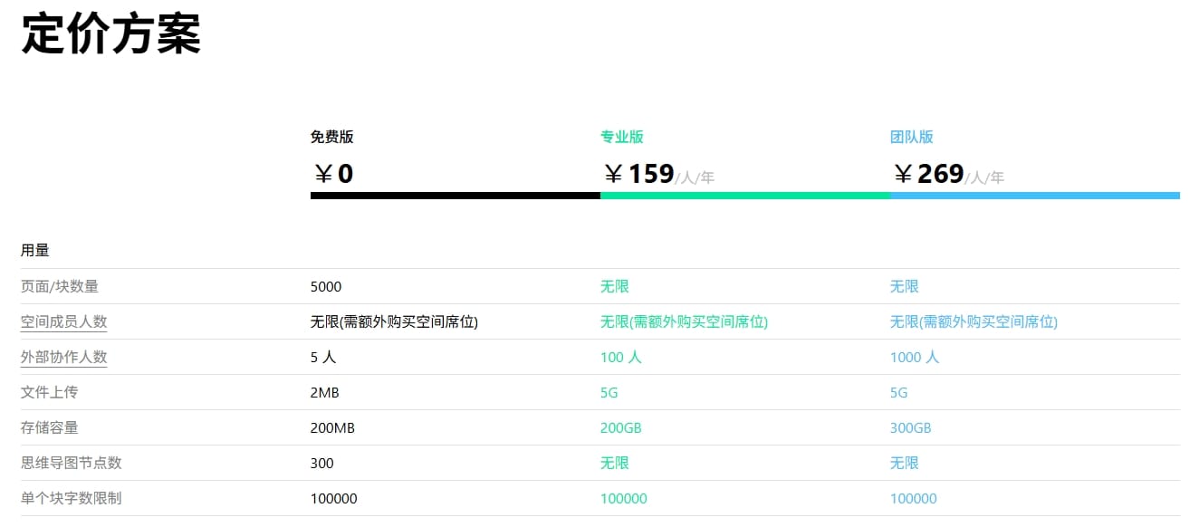看完这么多云笔记工具,再看看Notion的免费版提供的待遇: