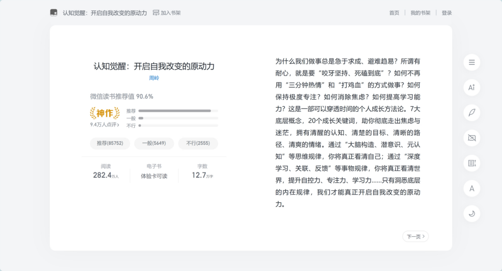 微信读书的手机端体验非常好,好到无以复加,但是总还是有一些场景需要在电脑端看看书什么的,那么就可以尝试以下几种方案。