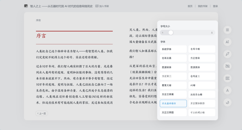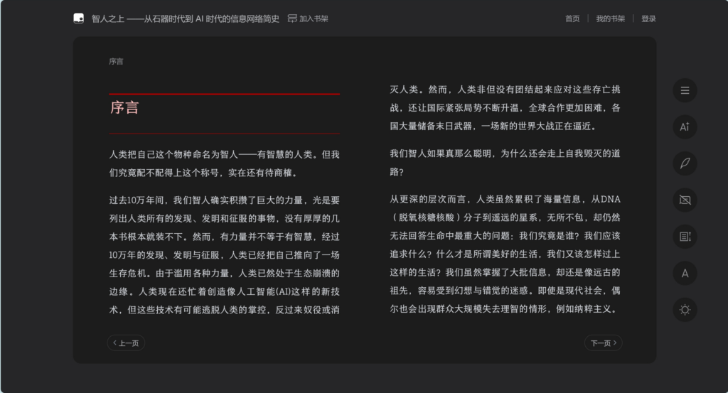 可以微信扫码登录,支持上下滚动阅读和双栏阅读。