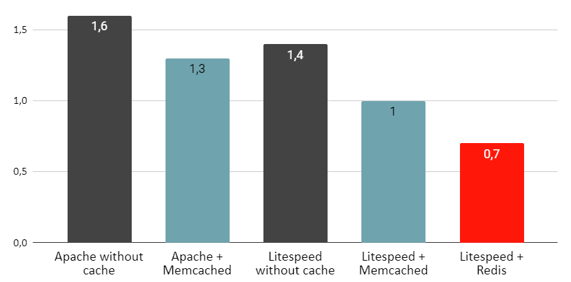 找到一篇文章Is Litespeed faster than Apache?,作者对不同的配置进行了测试,litespeed+Redis的性能是很优秀的。