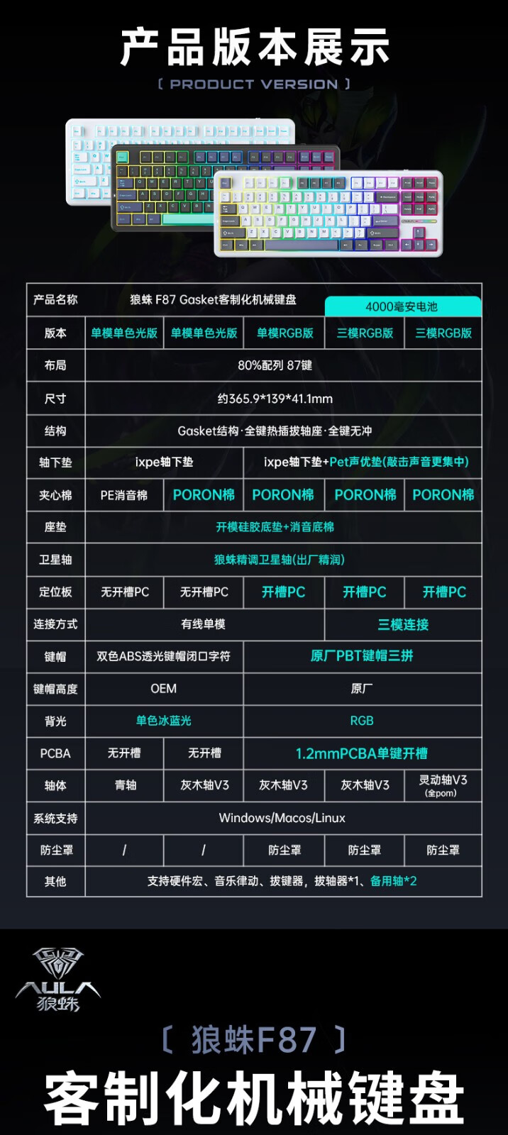 经过一段时间的学习,我发现B站的“键盘侠”特别多,学习了很多非常及时的新内容,这些博主做视频比写文章更新还要快,基本上你能在B站看到很多新的产品推荐。例如,经过我的学习,我发现居然200元还有一款满配的机械键盘:狼蛛f87