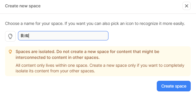 2.新建一个空间,或者直接用默认空间
