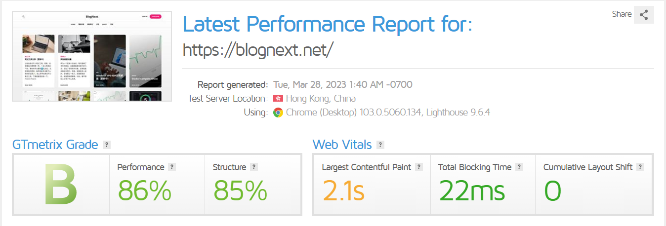 换个主题,立马变样,下面是换成Ruby主题后的成绩,立马变成B,但是网站也是3秒加载完成,你说这0.5秒,有那么大的差距吗?