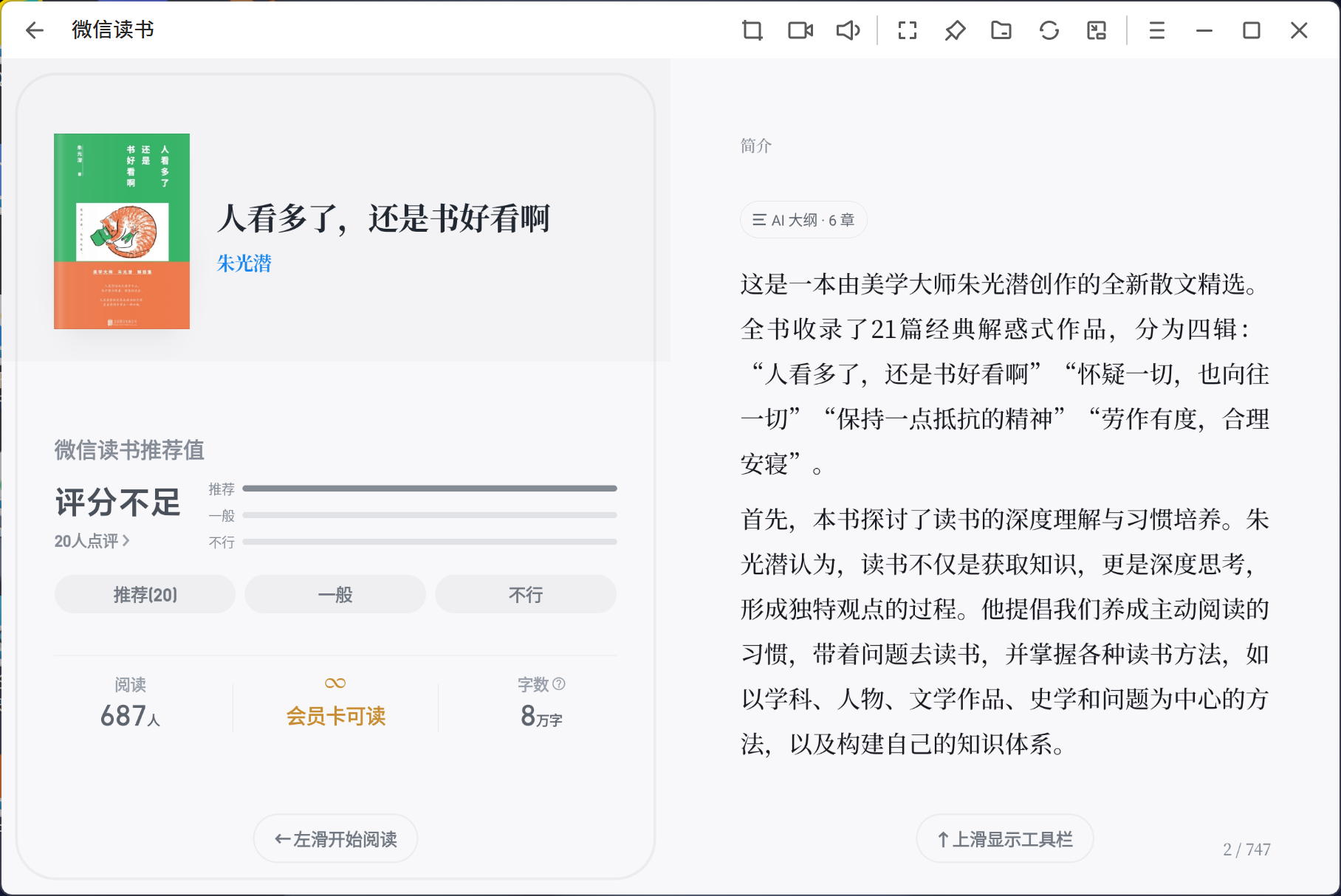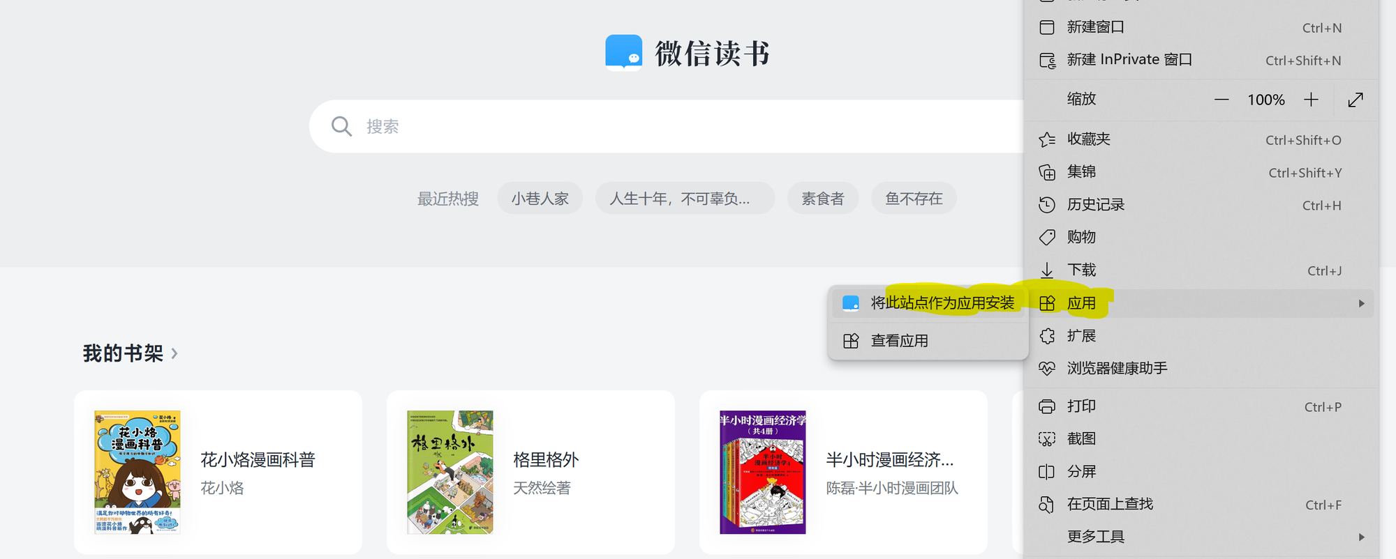 总体上,目前的微信读书已经拥有强大如桌面端的功能了,实在是厉害。因此,如果是如Edge这样的浏览器,就可以把网页包装成应用,直接以独立的窗口运行。