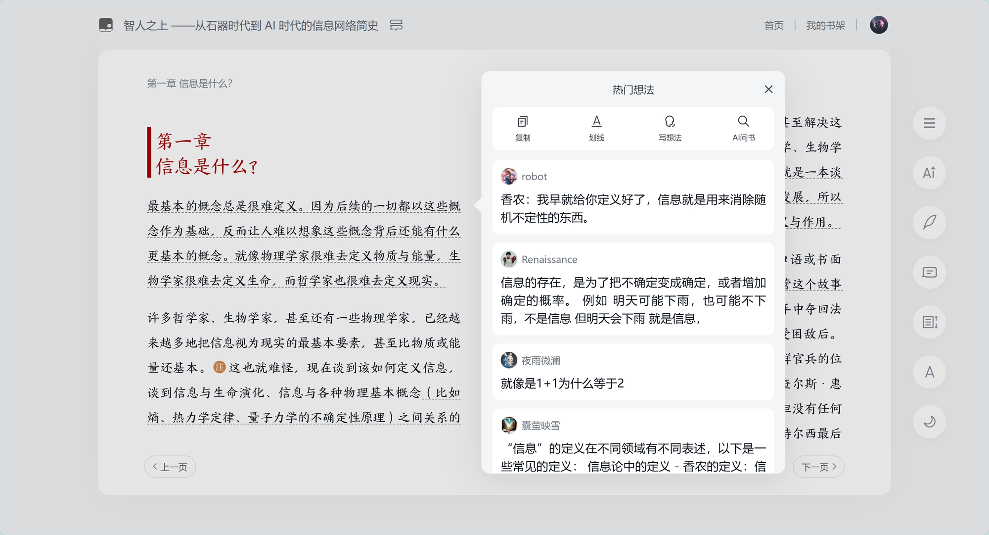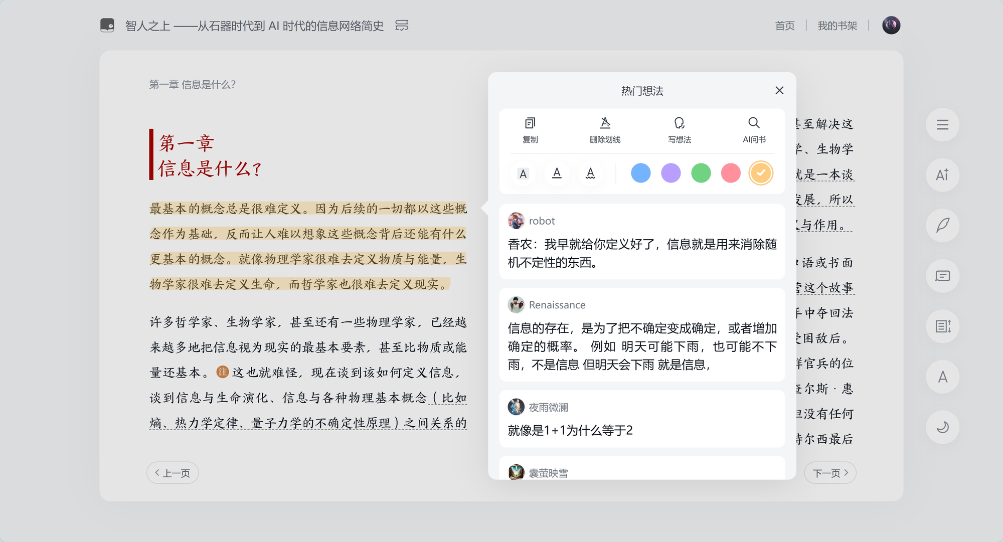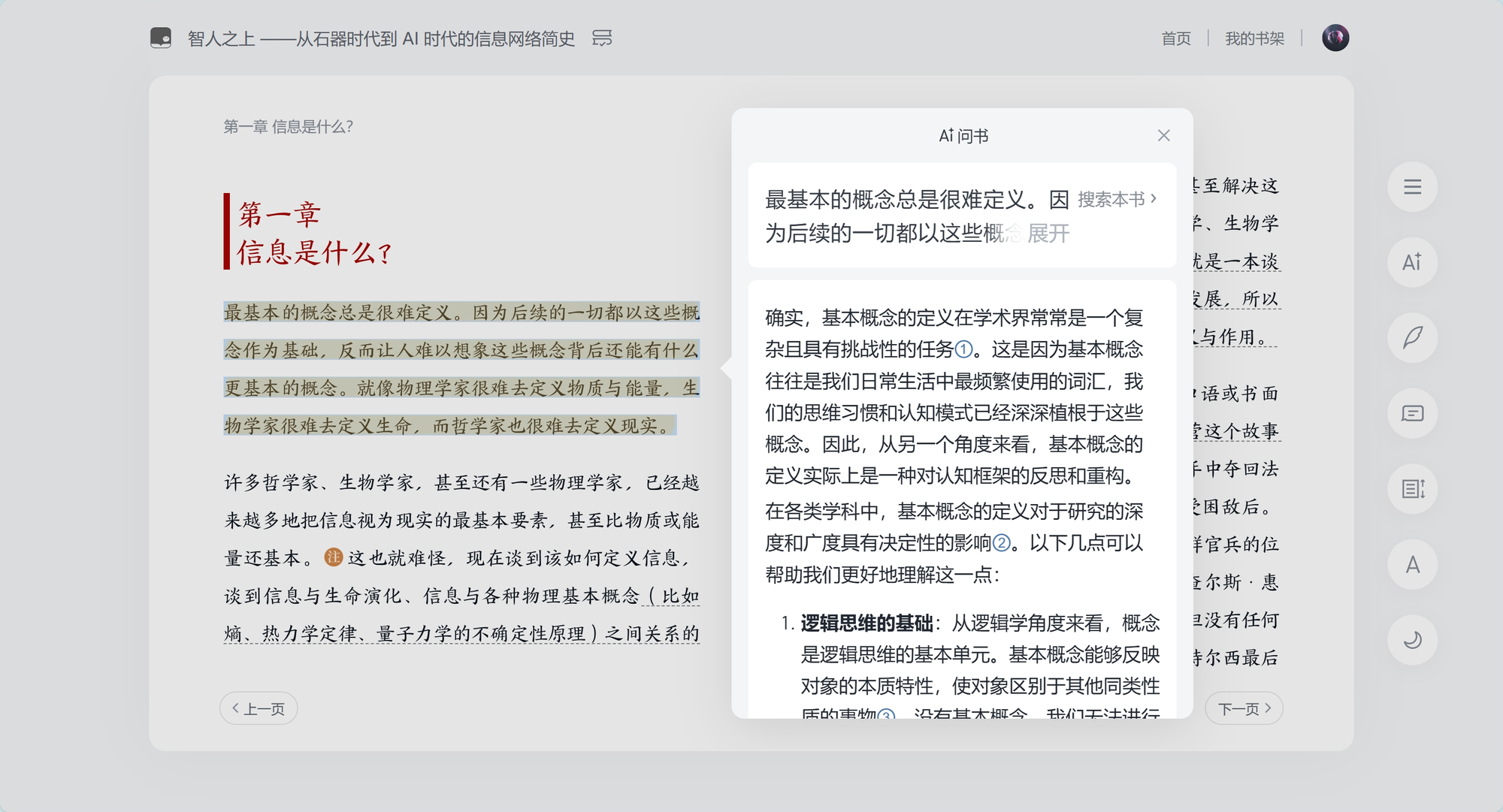 可以对选择的词、句或者段落AI问书: