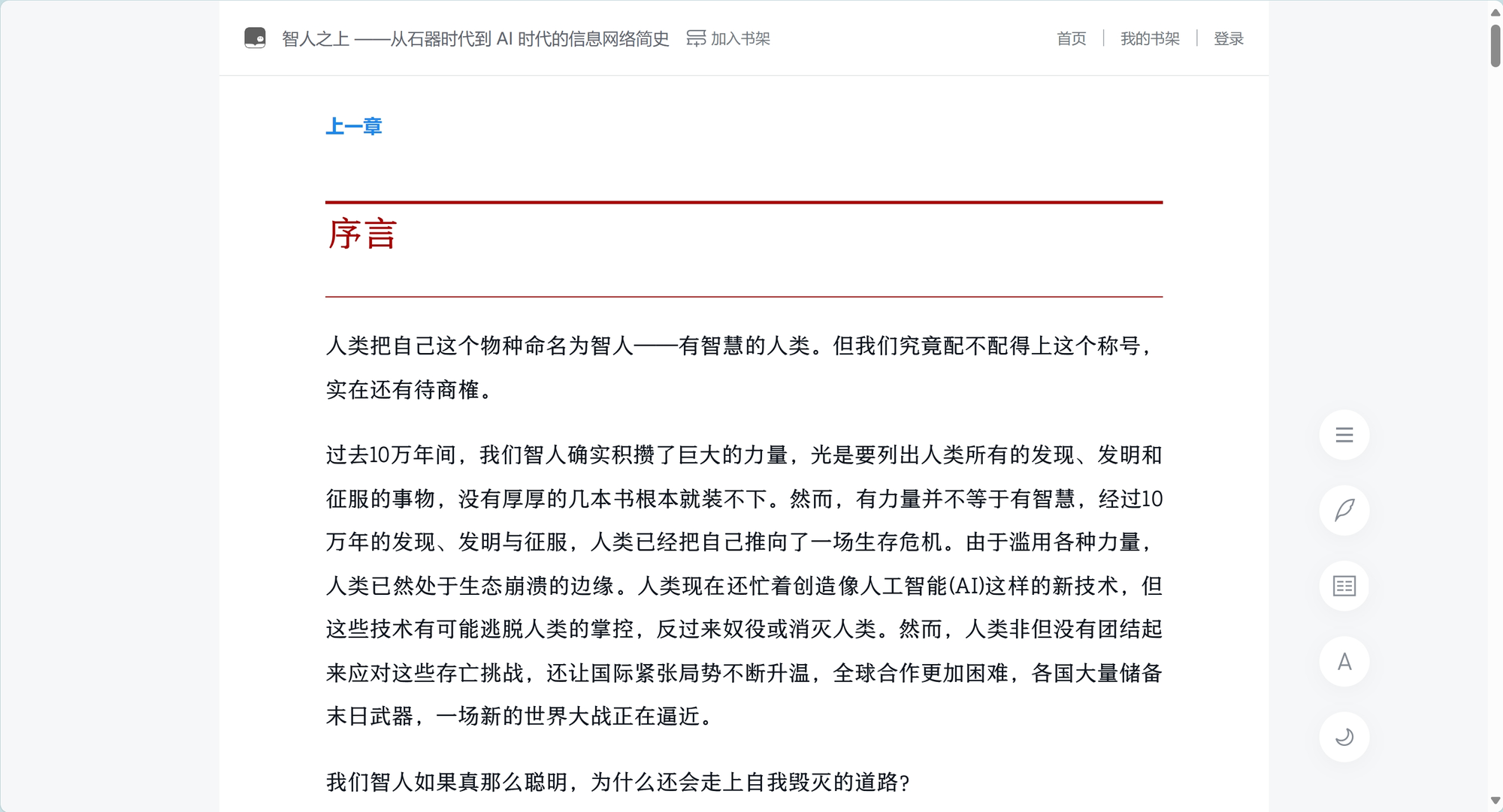 当然,电脑版的也是手机端的样子,就是那种竖屏的,很小,电脑上看将就吧。电脑端是双屏的,但是这个双屏并不好,或许以后能双屏阅读书籍就好了。
