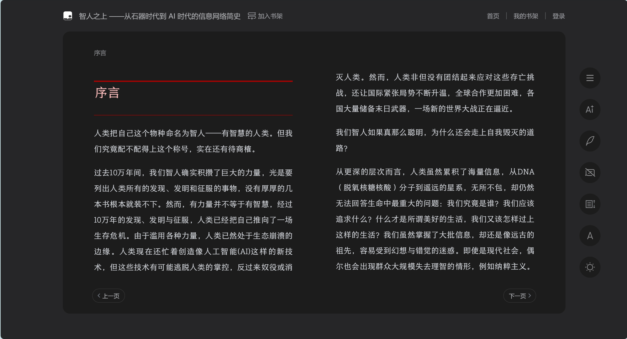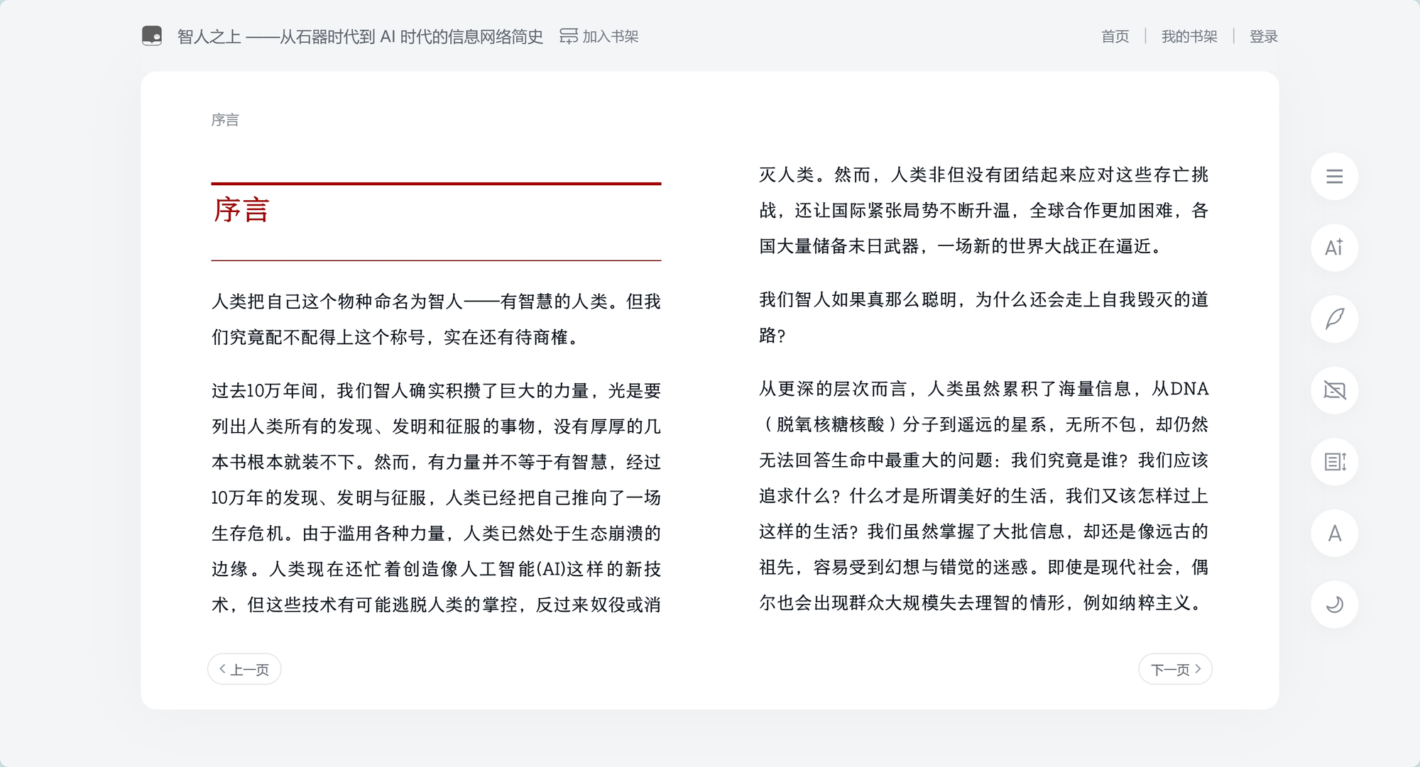 可以微信扫码登录,支持上下滚动阅读和双栏阅读。