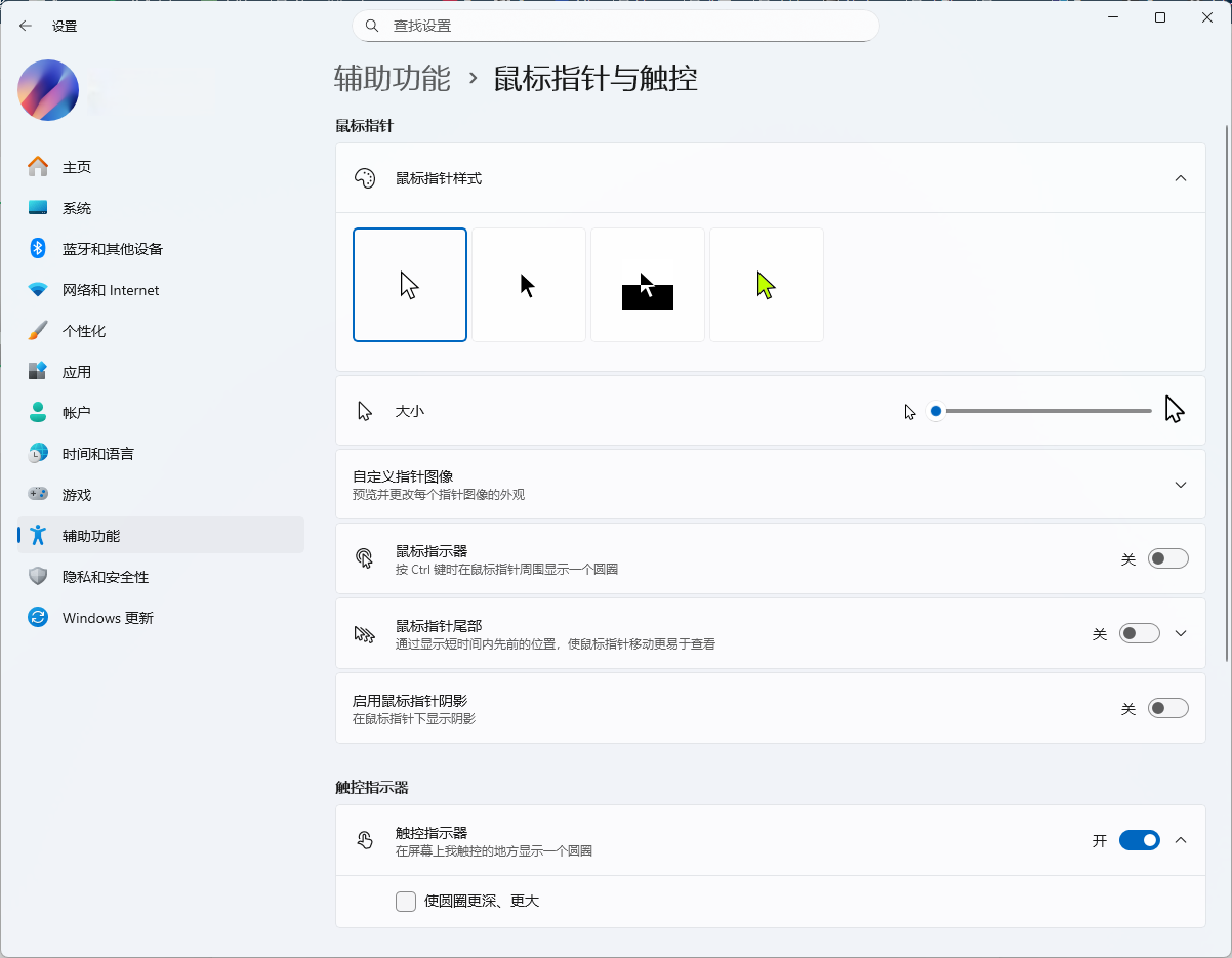 最近这段时间,这个问题变得尤为严重,几乎严重影响了我的日常使用体验。于是我去B站搜索了一下相关情况,发现不少用户也遇到了同样的困扰。其中一种常见的“解决方案”是将系统默认的鼠标指针更换为深色或彩色样式。确实,这样做之后指针不再消失了,可见性得到了保障。但是这种样式不符合我的审美偏好。原本简洁优雅的指针风格被迫放弃,换来的却是一个虽然“看得见”但“看不顺眼”的替代品,实在有些无奈。